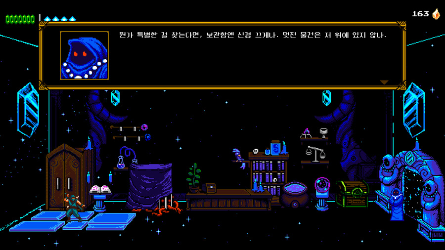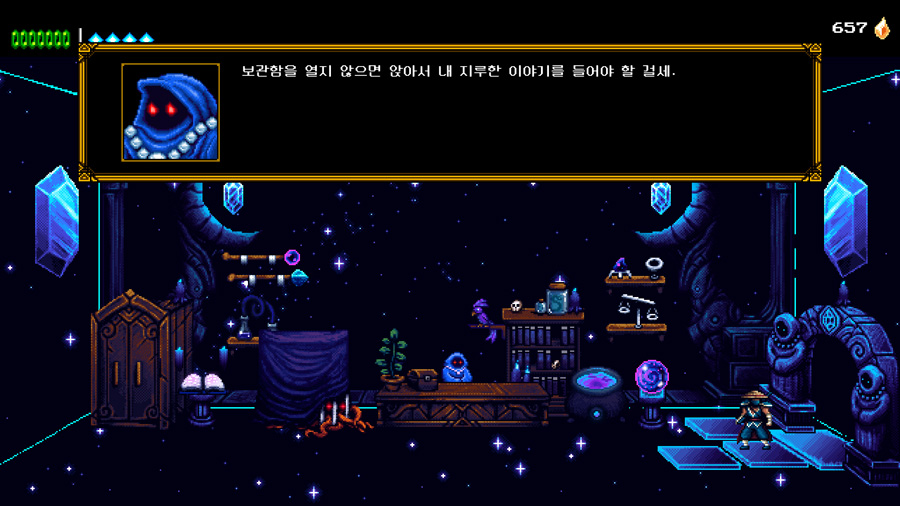 캐비닛 설교 내용 https://the-messenger.fandom.com/wiki/The_Shopkeeper%27s_Cabinet_Rants
