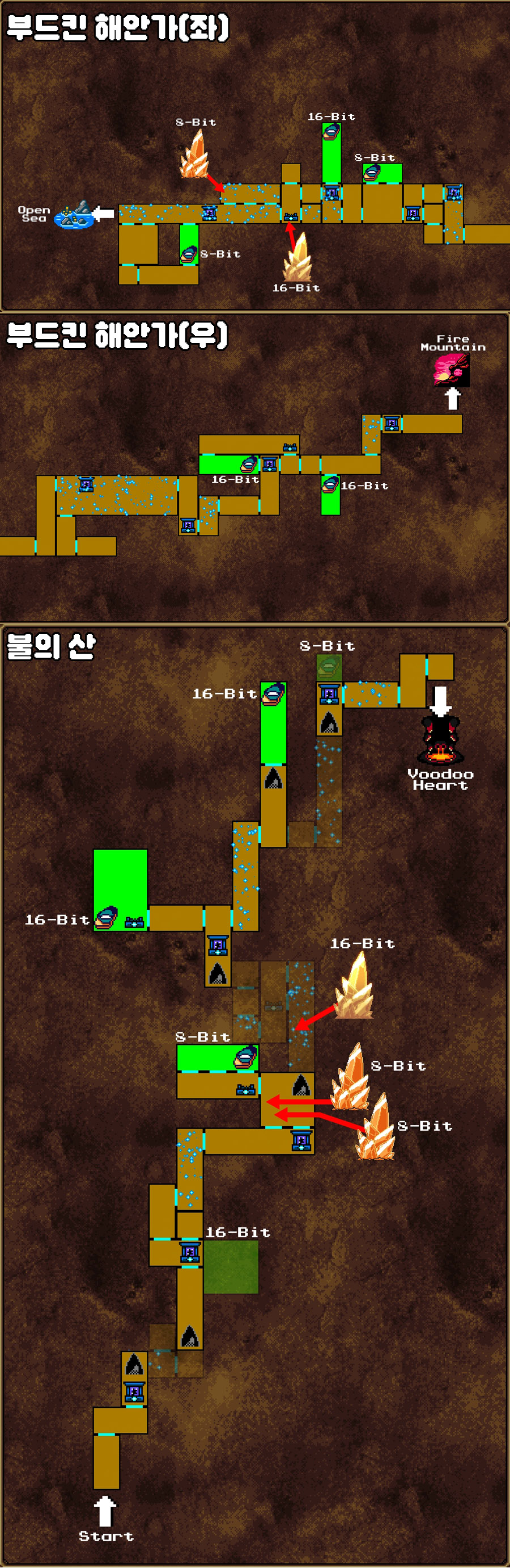이곳의 진행 방법은 참고영상을 보면 바로 이해가 되겠지만 8비트로 전환한후 맵을 되돌아와서