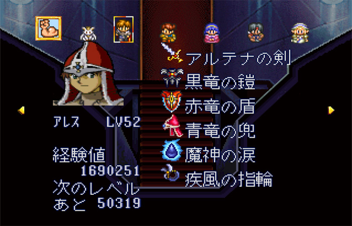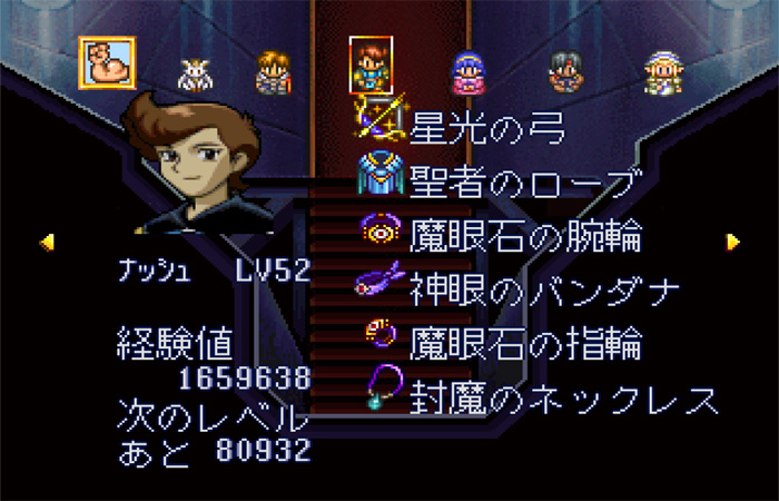 54-2. (기간한정) 기계성 진입전에 다몬의 탑의 최상층의 다몬과 대화하면 [마안석의 반지] 입수.