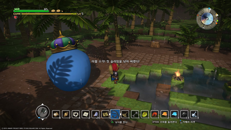 여기서 낚시를 하다보면 킹슬라임이 낚이는데 이녀석을 쓰러뜨리면 슬라임의 왕관을 얻는다.