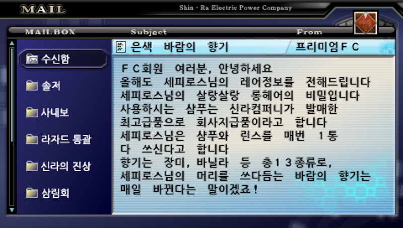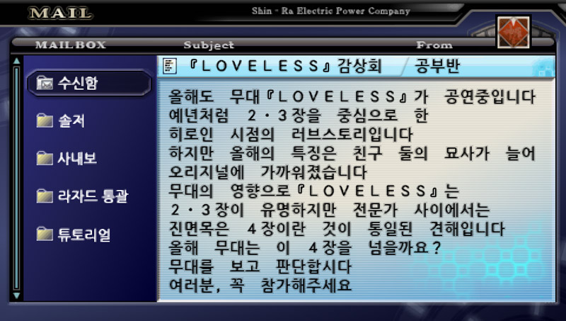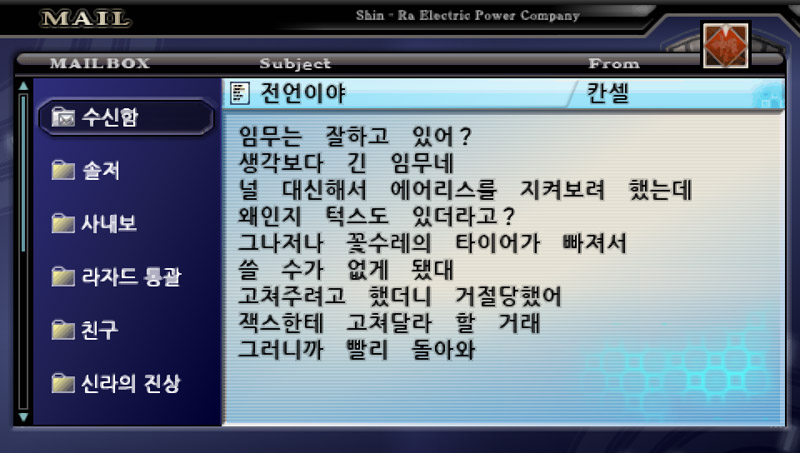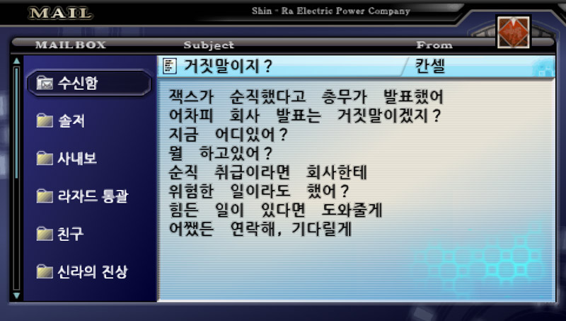 그래도 스토리 내내 메일을 통해서 대화를 주고 받기 때문에 나름 애정이 가는 캐릭터들이긴 하다.