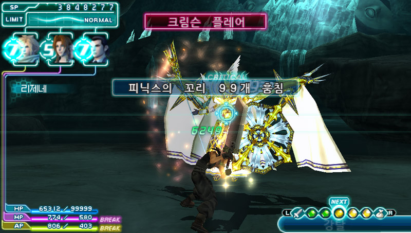 이 기술을 맞으면 바로 아이템으로 들어가 [피닉스의 꼬리]와 [엘릭서]를 먹은다음 [풀케어]로 회복을 하면 된다.