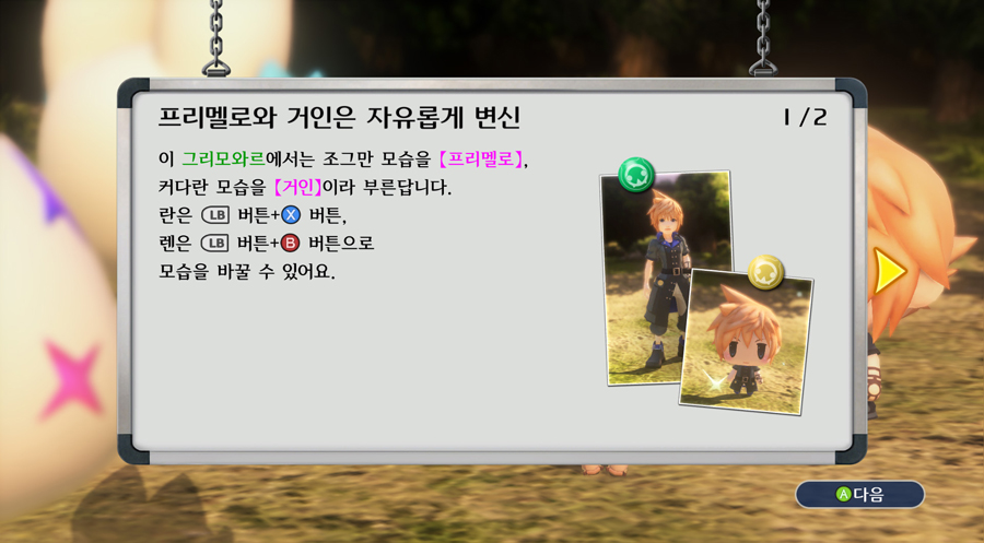 이 설정을 위해 기본적으로 주인공(렌,란)들은 L 크기이지만 변신으로 M 형태의 크기로도 변신할 수 있게 되어있다.