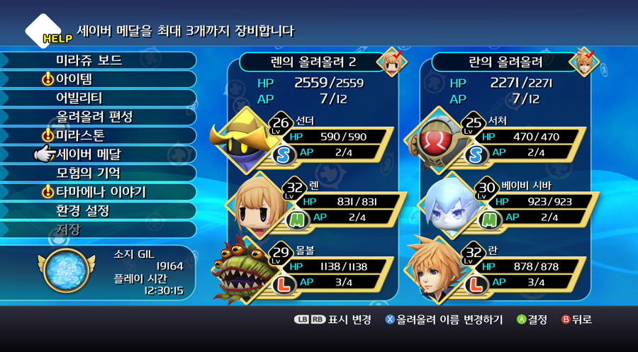 당연히 주인공은 항상 파티에 참여해야 하므로 [주인공 + S, M 미라쥬]의 조합 아니면 [주인공 + S, L 미라쥬]의 조합만이 가능하다.
