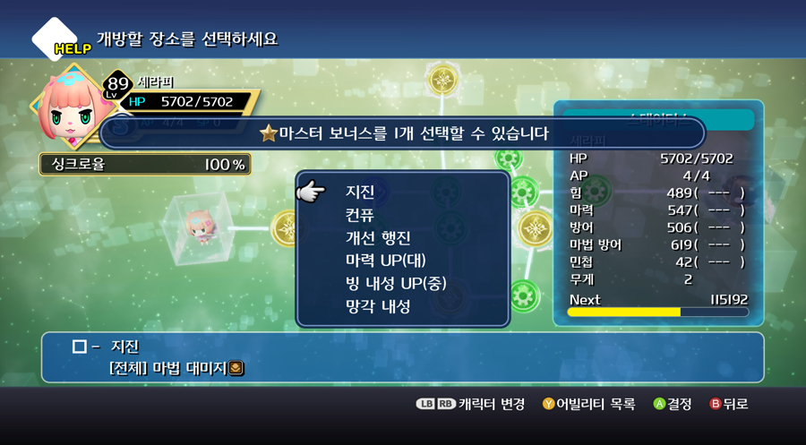 거기에 [빈 칸]이라는 곳에 게임에서 얻은 씨앗을 통해 특정 스킬을 배우게 할 수도 있다.