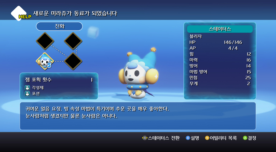 여튼 그러니까 주인공 외에 보통 4마리의 미라쥬가 항상 파티에 포함되어 전투를 함께 치루는 형태가 된다.