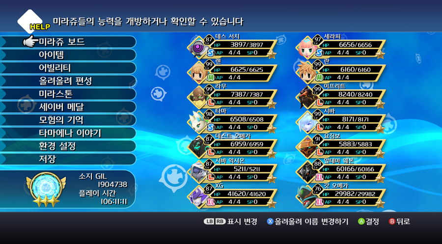 지금까지 내가 즐겼던 테일즈의 주인공들을 나리키리 한작품으로 전부 키우고 조작 해볼 수 있다는 특별한 즐거움이 있는 것이다.
