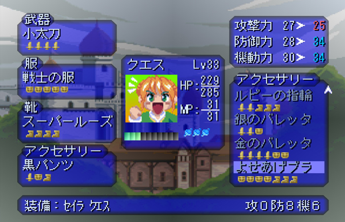 거기에 퀘스의 경우 장비로 검정색팬티, 보여주기브라 같은 아이템을 장착하는 등 그시대의 개그도 엿볼수 있다.