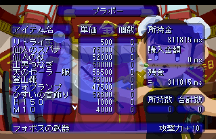 포보스의 화약포(火藥包)와 타로보의 미사일(ミサイル)도 많이 구입해두면 좋다.