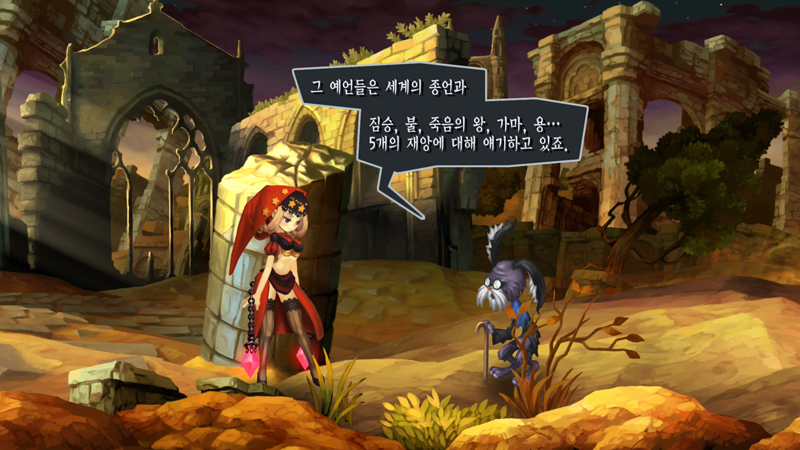 게임상에서 알려준 예언대로 짐승, 죽음의 왕, 불꽃, 가마, 용을 메인 캐릭터들로 쓰러뜨려야 하는데