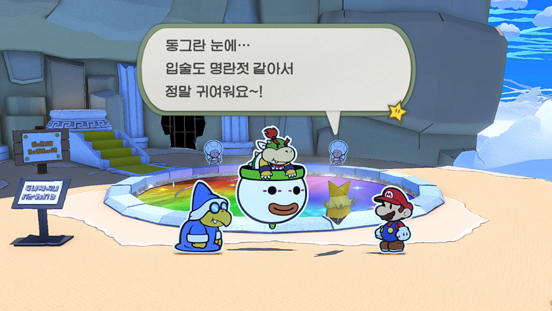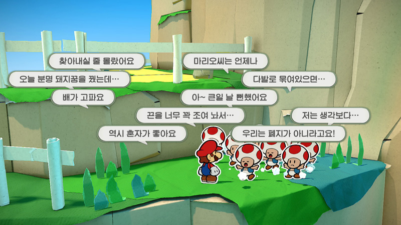 마리오가 그냥 보통 작품도 요새 한글화를 나름 잘 해주는 곳인데 이런 대사가 많이 나오는 게임도 한글화 해준다는것도 참 고마운 일이다.