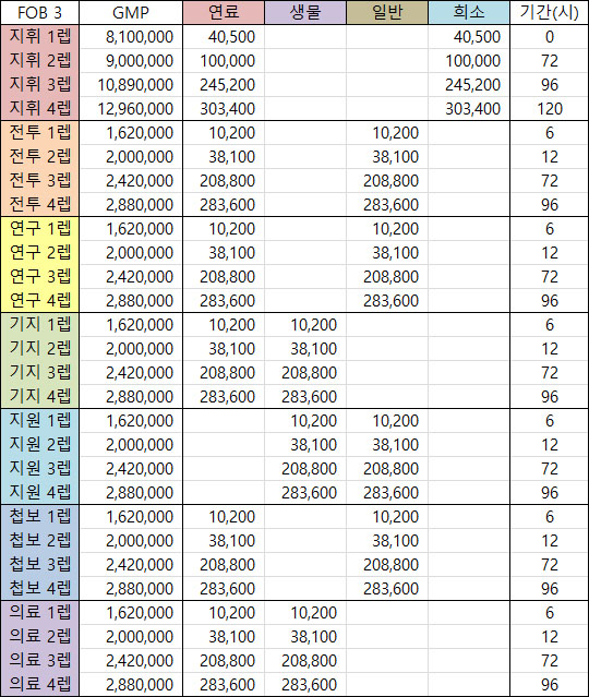 알다시피 FOB는 유저가 어떤 지역의 것을 구입했냐에 따라 자원채굴량과 생김새가 조금씩 다르며