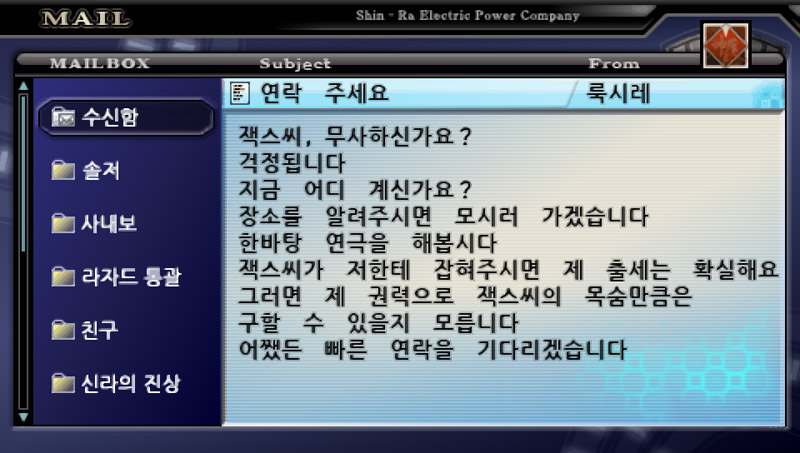 그래도 스토리 내내 메일을 통해서 대화를 주고 받기 때문에 나름 애정이 가는 캐릭터들이긴 하다.