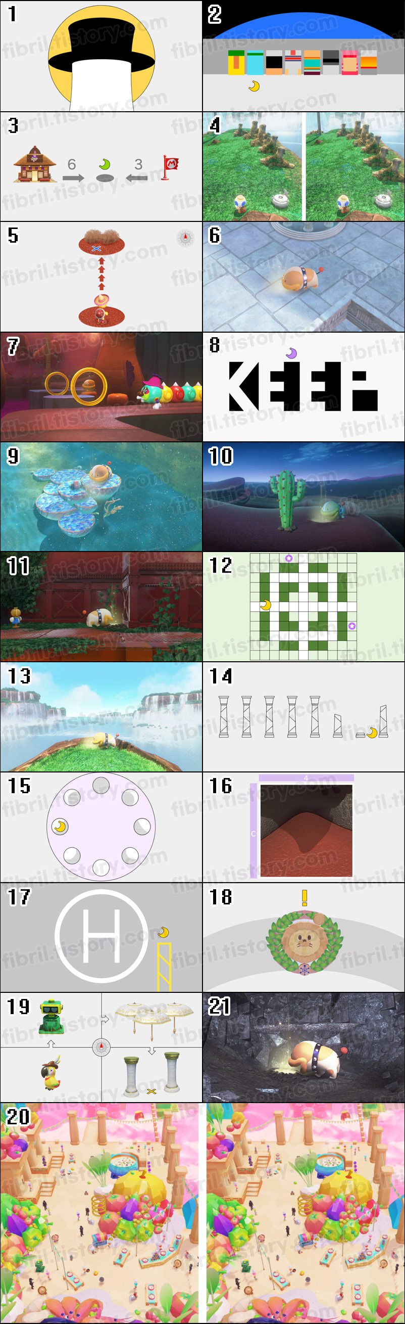 예를 들면 1번 사진은 버섯 왕국에 있고 실제 파워문은 모자 왕국에서 얻지만 해당 파워문은 버섯 왕국것이다.