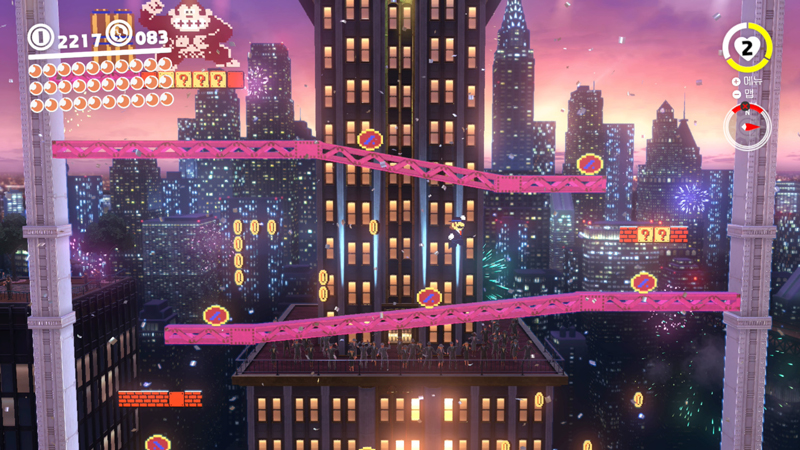 반대로 이 게임은 맵 곳곳에 파워문과 코인이 잔뜩 숨겨져 있으니 그걸 찾으러 다니면서 경치 구경하는 맛이 있다는거다.